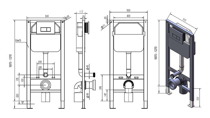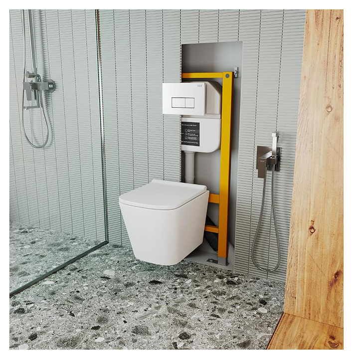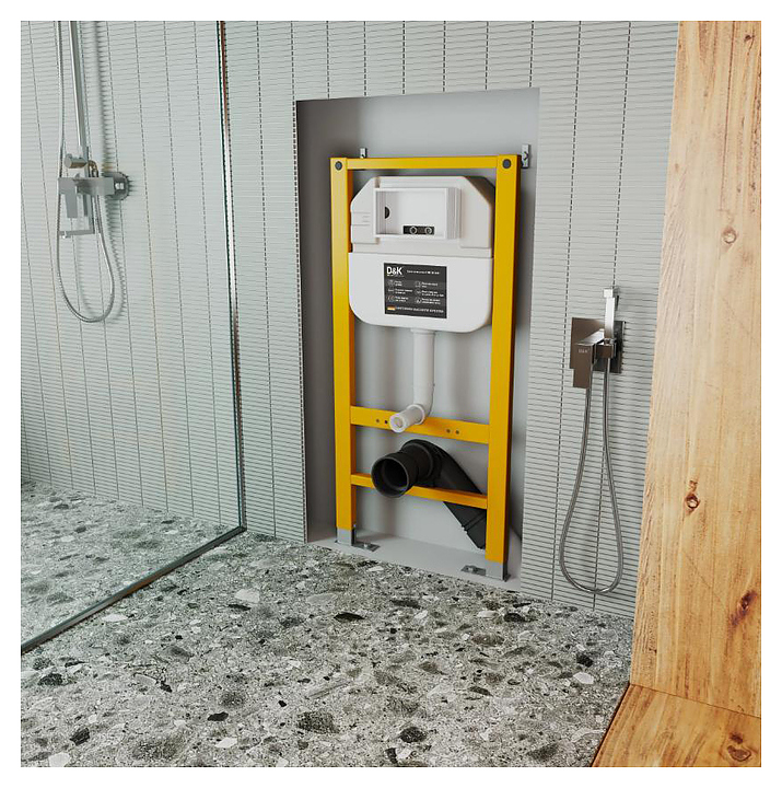 Инсталляция D&K DI8050127 предназначена для установки с подвесными унитазами. Каркас выполнен из стали и окрашен антикоррозийной эмалью, устойчивой к ржавчине. Особенности: