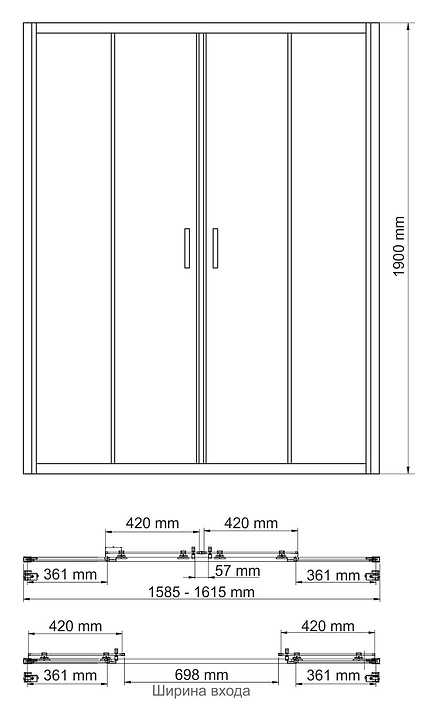 Душевая дверь Wasserkraft Lippe 45S45 обеспечит хорошую герметичность от разбрызгивания, стекания и протечки воды в ванной комнате. Изделие состоит из 2 раздвижных дверей с силиконовым уплотнителем и магнитным замком, а также 2 фиксированных панелей. Покрытие WasserSchutz предотвращает образование известкового налета и прочих загрязнений, облегчает уход и поддерживает чистоту. Полотно двери выполнено из прочного закаленного стекла, раздвижной механизм - из сплава металлов, ручки - из алюминия и ABS-пластика, профиль - из анодированного алюминия с покрытием порошоковой краской. В комплект поставки входит набор быстрого монтажа. Поддон в комплект поставки не входит и приобретается отдельно. Особенности: