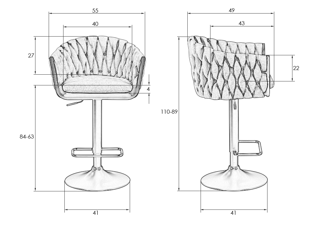 Барный стул DOBRIN 9692-LM MARCEL предназначен для обустройства барной зоны в кухнях, столовых, гостиных, а также в кафе и ресторанах. Модель оснащена основанием в виде диска, подлокотниками, мягким вращающимся сиденьем фигурной формы, механизмом регулировки высоты газлифт, эргономичной мягкой спинкой, которая оказывает хорошую поддержку и подставкой для ног. Каркас и основание изготовлены из металла, обивка - из велюра. Изделие выполнено в современном стиле, имеет оригинальный дизайн в виде плетения и поставляется в разобранном виде. Простая сборка. Дополнительные характеристики: