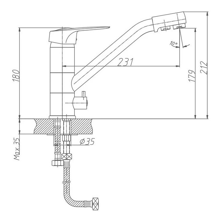 Смеситель Haiba HB4304 предназначен для подачи горячей и холодной воды в кухонных помещениях. Модель оснащена встроенным изливом для питьевой воды и керамическим картриджем, который обеспечивает плавный ход рычага смесителя, контроль и точность при выборе напора и температуры. Аэратор создает мягкую струю без брызг. Изделие выполнено из латуни, отличающейся прочностью, долговечностью и устойчивостью к перепадам температуры. В комплект поставки входит подводка. Дополнительные характеристики: