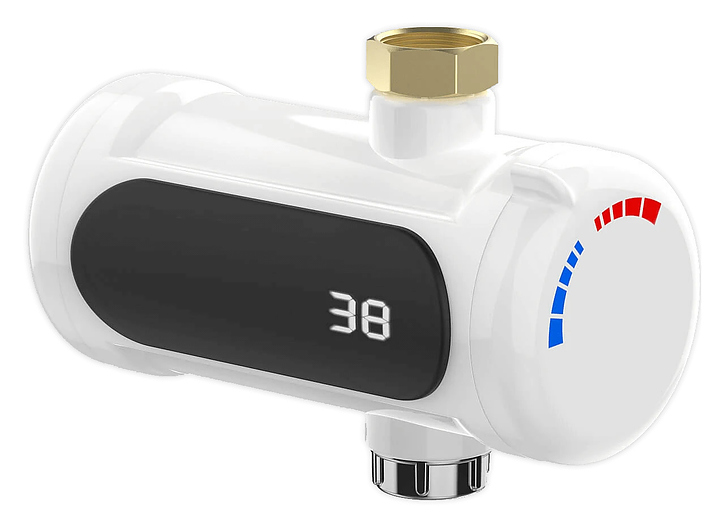 Проточный водонагреватель Unipump BEF-019A выполнен в виде смесителя и предназначен для быстрого нагрева проточной холодной воды для бытовых целей в помещениях, где по какой-либо причине нет возможности или целесообразности провести горячую воду или поставить накопительный водонагреватель. Модель оснащена защитой от перегрева и дисплеем, отображающим температуру воды. Корпус выполнен из пластика. В комплект поставки входят переходные муфты, прокладки и пластиковые стяжки. Дополнительные характеристики: