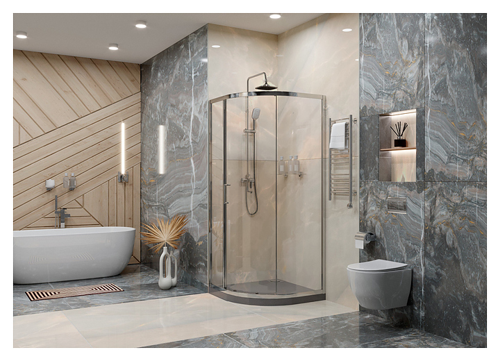 Универсальный душевой уголок Ambassador Kingston 14011112 предназначен для использования в ванных комнатах. Благодаря угловой конструкции в форме четверти круга изделие можно вписать даже в ванные комнаты небольшой площади. Модель оснащена раздвижной дверью на роликах. Водоотталкивающее покрытие EasyClean гарантирует длительную защиту от коррозии и водяных разводов. Полотно выполнено из прочного закаленного стекла, профиль - из алюминия, ролики - из стали. Дополнительные характеристики: