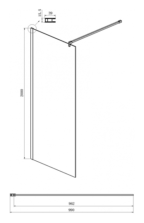 Перегородка душевая Ambassador Walk-in 15034127 100x200 см