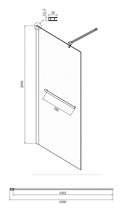 Перегородка душевая Ambassador Walk-in 15031234 110x200 см