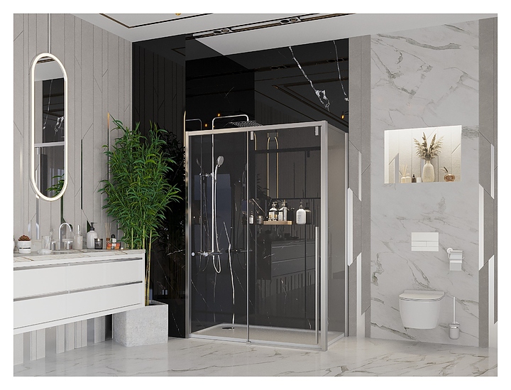 Универсальный душевой уголок Ambassador Intense 110021104IX-90IX предназначен для использования в ванных комнатах. Модель оснащена раздвижной дверью с доводчиком для бесшумной работы. Водоотталкивающее покрытие EasyClean гарантирует длительную защиту от коррозии и водяных разводов. Полотно выполнено из прочного закаленного стекла, профиль - из алюминия. В комплект поставки входят душевая дверь 110021104IX и боковая стенка 90IX. Дополнительные характеристики: