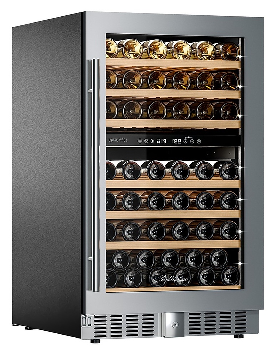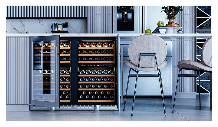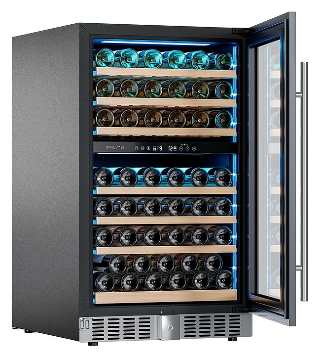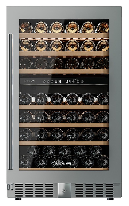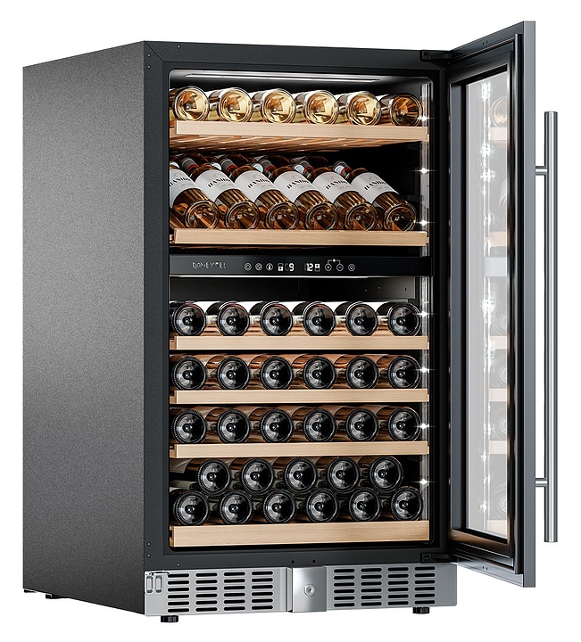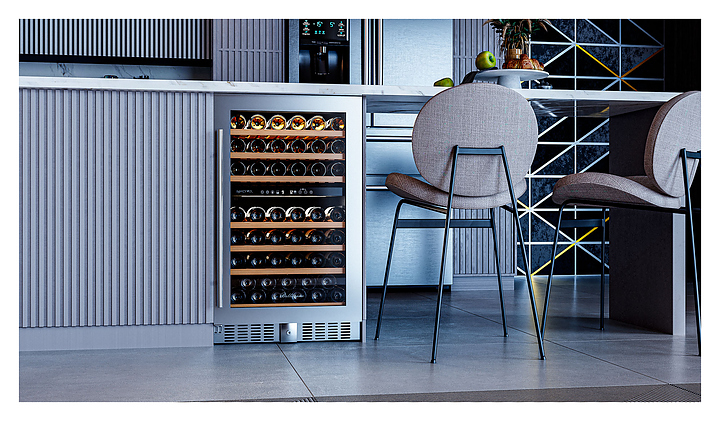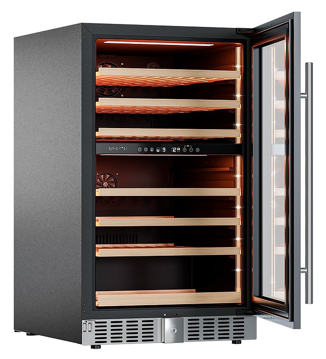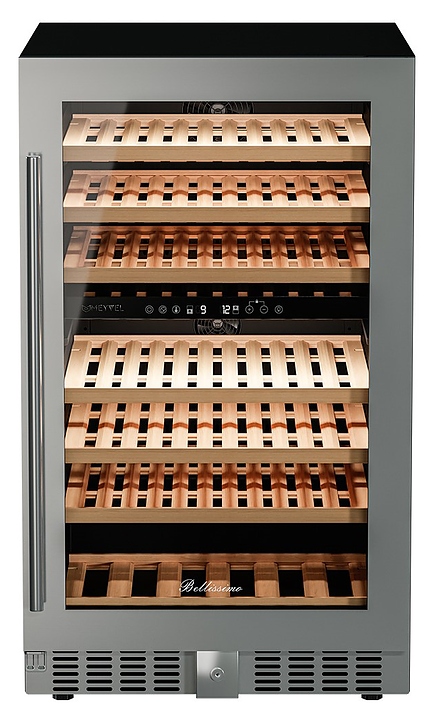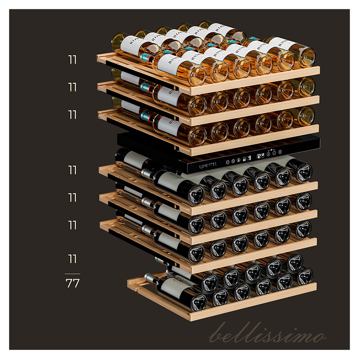 Винный шкаф MEYVEL MV77PRO-KST2 предназначен для демонстрации, хранения и создания оптимальных условий для сохранения всех вкусовых свойств вина в бутылках на предприятиях общественного питания, торговли, в барах, ресторанах, специализированных магазинах, частных домах или квартирах. Модель оснащена сенсорной панелью управления, электронным термостатом, понорамной светодиодной подсветкой, замком, угольным фильтром, 7 выкатными полками и регулируемыми по высоте ножками. Корпус выполнен из окрашенной в черный цвет стали, дверь - из тройного стеклопакета с УФ защитой, полки - из массива бука. Особенности: