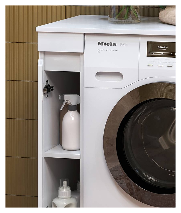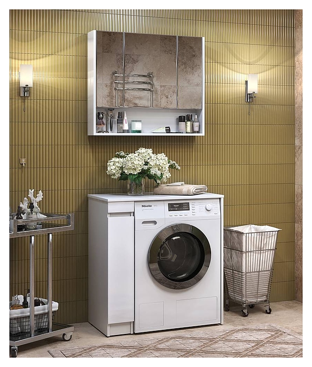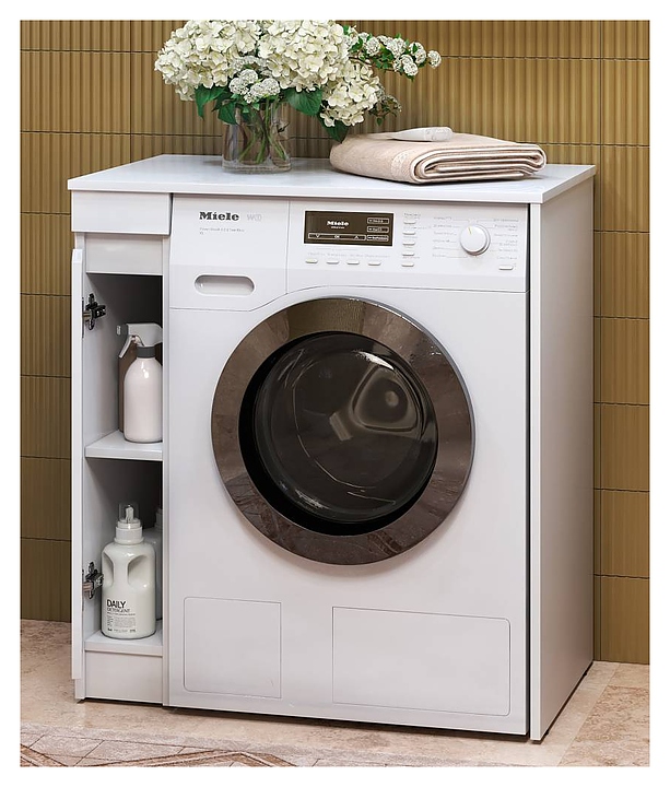 Напольная тумба VIGO Urban tn.URB.20.1D+st.URB.80 дополнит интерьер ванной комнаты и предназначена для установки со стиральной машиной. Модель оснащена распашной дверцей с доводчиком, интегрированной ручкой и полкой внутри. Корпус и столешница выполнены из ЛДСП, фасад - из ЛМДФ с пленкой. В комплект поставки входят тумба Urban tn.URB.20.1D и столешница st.URB.80. Дополнительные характеристики: