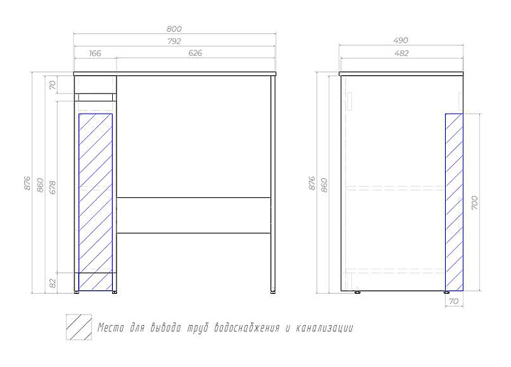 Тумба напольная VIGO Urban tn.URB.20.1D+st.URB.80 80 см, со столешницей