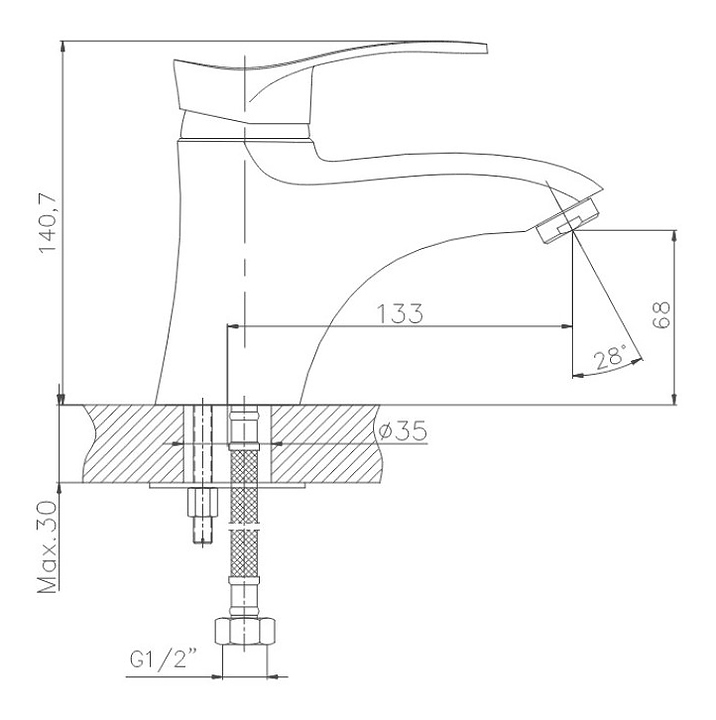 Смеситель для раковины Cron CN1001 предназначен для подачи горячей и холодной воды в ванных и туалетных помещениях. Керамический картридж обеспечивает плавный ход рычага смесителя, контроль и точность при выборе напора и температуры воды. Аэратор создает мягкую струю без брызг и снижает уровень шума. Изделие выполнено из металлического сплава, который отличается прочностью и долговечностью. В комплект поставки входит гибкая подводка. Дополнительные характеристики: