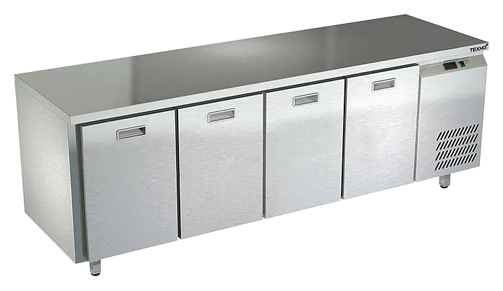 Морозильный стол Техно-ТТ СПБ/М-123/04-2207 предназначен для раскатки теста, обработки, заморозки и долговременного хранения продуктов, полуфабрикатов, напитков и мороженого на предприятиях общественного питания и торговли. Модель оснащена 4 секциями с 4 ящиками, направляющими с доводчиками (Австрия) и круглыми ножками, регулируемыми по высоте на 50 мм (Италия). Корпус и столешница выполнены из нержавеющей стали AISI 430, задняя стенка и дно - из оцинкованной стали.