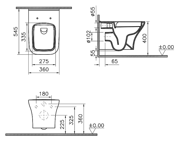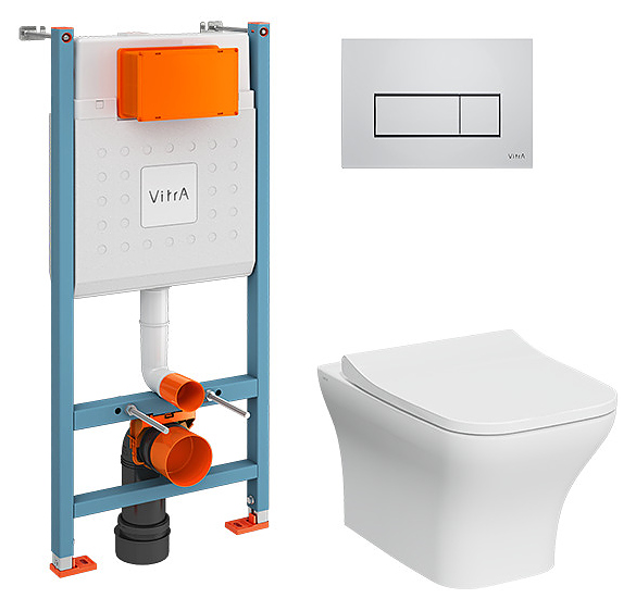 Унитаз подвесной с инсталляцией, клавишей смыва и сиденьем Vitra Zentrum Square 9875B003-7201