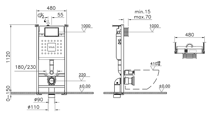 Подвесной унитаз с инсталляцией Vitra Sanibelle 9878B003-7200 идеально впишется в интерьер любой туалетной комнаты. Благодаря подвесной конструкции унитаз не занимает много места в помещении, а свободное пространство под чашей делает уборку в ванной комнате гораздо легче. Безободковое исполнение позволяет предотвратить скопление бактерий и грязи на внутренней поверхности чаши и обеспечивает ее чистоту и гигиеничность использования. Изделие выполнено из фарфора, который обладает повышенной прочностью и устойчивостью к негативным внешним факторам, а также долгое время сохраняет идеальную белизну и не впитывает запахи и грязь, сиденье - из дюропласта, отличающегося повышенной устойчивостью к механическим воздействиям, влажности и средствам дезинфекции, а также антибактериальным эффектом. В комплект поставки входят инсталляция, чаша унитаза, крышка-сиденье, кнопка смыва и крепеж. Особенности: