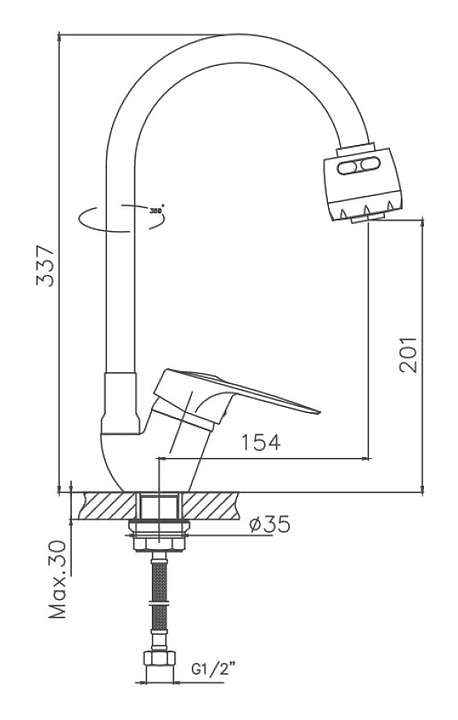 Смеситель Cron CN4304 предназначен для подачи горячей и холодной воды в кухонных помещениях. Модель оснащена гибким изливом с режимом душ и керамическим картриджем, который обеспечивает плавный ход рычага смесителя, контроль и точность при выборе напора и температуры воды. Аэратор создает мягкую струю без брызг. Изделие выполнено из металлического сплава, который отличается прочностью и долговечностью. В комплект поставки входит подводка. Дополнительные характеристики:
