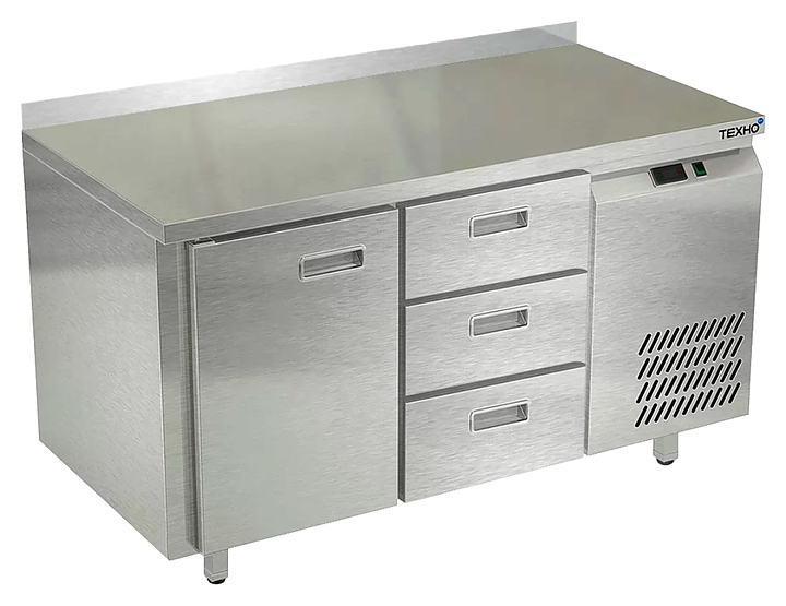 Морозильный стол Техно-ТТ СПБ/М-222/13-1307 предназначен для раскатки теста, обработки, заморозки и долговременного хранения продуктов, полуфабрикатов, напитков и мороженого на предприятиях общественного питания и торговли. Модель оснащена 1 секцией с дверью и регулируемой полкой-решеткой, 1 секцией с 3 ящиками, направляющими с доводчиками (Австрия), петлями-доводчиками (Польша), бортом и круглыми ножками, регулируемыми по высоте на 50 мм (Италия). Корпус и столешница выполнены из нержавеющей стали AISI 430, задняя стенка и дно - из оцинкованной стали. Стол поставляется в собранном виде. Особенности: