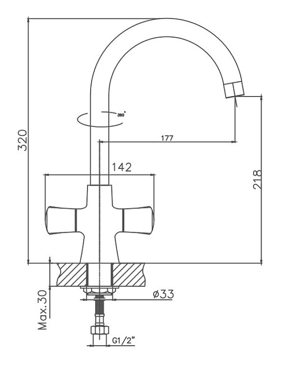 Смеситель Cron CN70866 предназначен для подачи горячей и холодной воды в кухонных помещениях. Модель оснащена вентилями и керамической кран-буксой, которая обеспечивает бесшумное смешивание воды. Аэратор создает мягкую струю без брызг. Изделие выполнено из металлического сплава, который отличается прочностью и долговечностью. В комплект поставки входит подводка. Дополнительные характеристики: