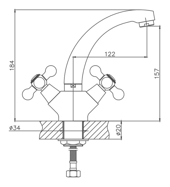 Смеситель Cron CN1719 предназначен для подачи горячей и холодной воды в кухонных помещениях. Модель оснащена вентилями и керамической кран-буксой, которая обеспечивает бесшумное смешивание воды. Аэратор создает мягкую струю без брызг. Изделие выполнено из металлического сплава, который отличается прочностью и долговечностью. В комплект поставки входит подводка. Дополнительные характеристики: