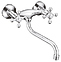 Смеситель Cron CN4608 предназначен для подачи горячей и холодной воды в кухонных помещениях. Модель оснащена вентилями и керамической кран-буксой, которая обеспечивает бесшумное смешивание воды. Аэратор создает мягкую струю без брызг. Изделие выполнено из металлического сплава, который отличается прочностью и долговечностью. В комплект поставки входят эксцентрики и декоративные чашки. Дополнительные характеристики:
