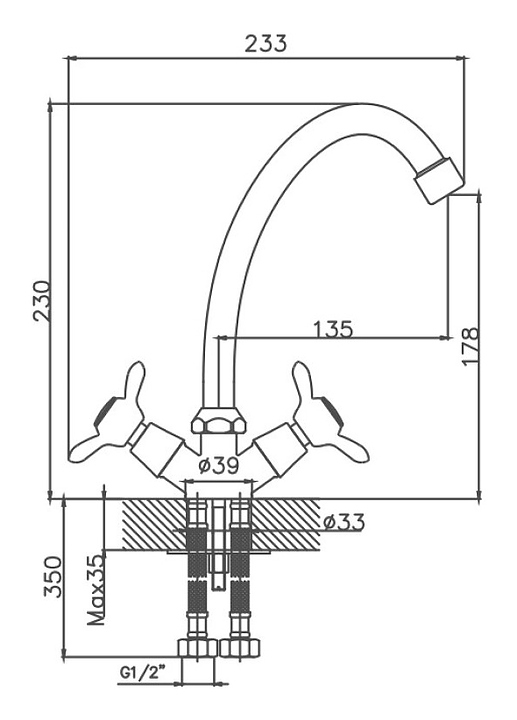 Смеситель Cron CN4012 предназначен для подачи горячей и холодной воды в кухонных помещениях. Модель оснащена вентилями и керамической кран-буксой, которая обеспечивает бесшумное смешивание воды. Аэратор создает мягкую струю без брызг. Изделие выполнено из металлического сплава, который отличается прочностью и долговечностью. В комплект поставки входит подводка. Дополнительные характеристики:
