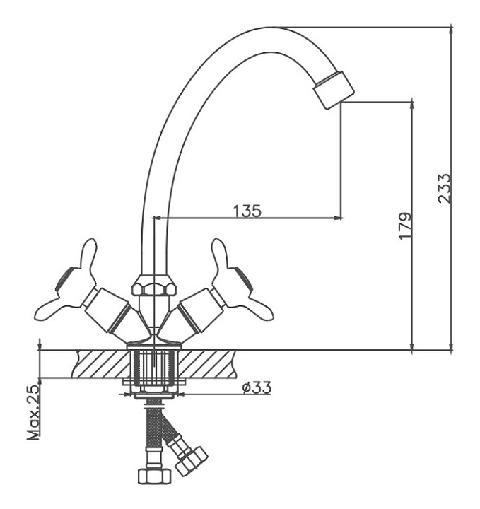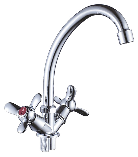 Смеситель Cron CN4012-2 предназначен для подачи горячей и холодной воды в кухонных помещениях. Модель оснащена вентилями и керамической кран-буксой, которая обеспечивает бесшумное смешивание воды. Аэратор создает мягкую струю без брызг. Изделие выполнено из металлического сплава, который отличается прочностью и долговечностью. В комплект поставки входит подводка. Дополнительные характеристики: