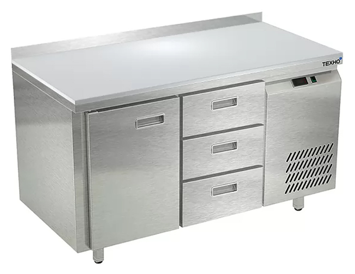 Морозильный стол Техно-ТТ СПБ/М-622/13-1307 предназначен для раскатки теста, обработки, заморозки и долговременного хранения продуктов, полуфабрикатов, напитков и мороженого на предприятиях общественного питания и торговли. Модель оснащена 1 секцией с дверью и регулируемой полкой-решеткой, 1 секцией с 3 ящиками, направляющими с доводчиками (Австрия), петлями-доводчиками (Польша), бортом и круглыми ножками, регулируемыми по высоте на 50 мм (Италия). Корпус выполнен из нержавеющей стали AISI 430, задняя стенка и дно - из оцинкованной стали, столешница - из полипропилена. Стол поставляется в собранном виде. Особенности: