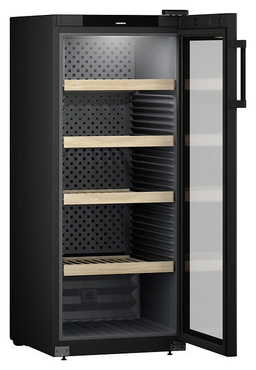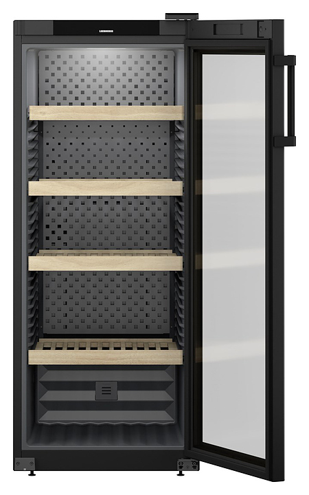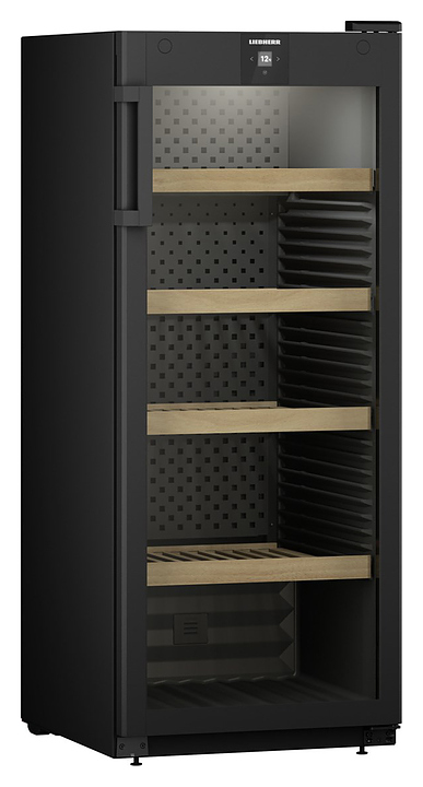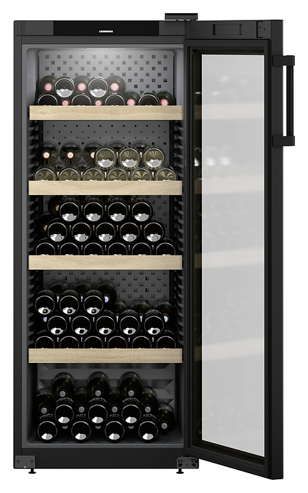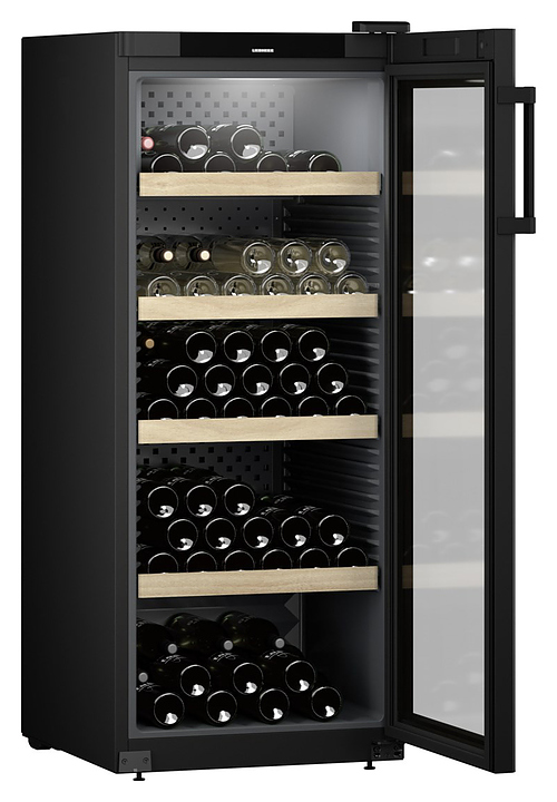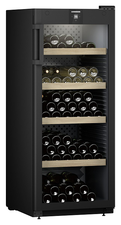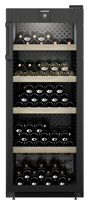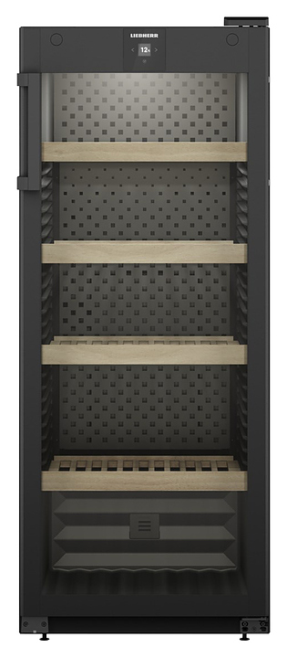 Винный шкаф Liebherr WPbl 4601-20 001 предназначен для охлаждения и длительного хранения разливного вина в частных домах, квартирах, отелях и офисах. Модель оснащена сенсорным ЖК-дисплеем, цифровой индикацией температуры, светодиодным потолочным освещением и 5 выдвижными полками. Боковые и задняя стенка выполнены из стали, дверь - из изоляционного стекла, полки - из дерева, ручка- из пластика. Особенности: