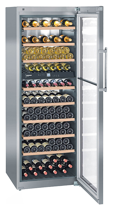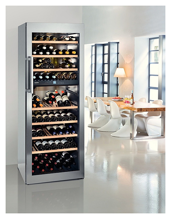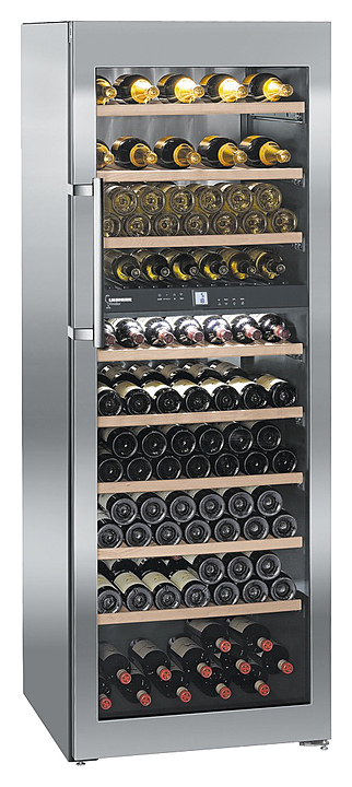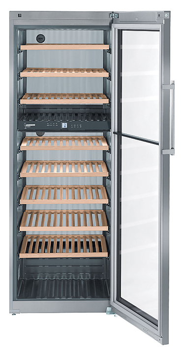 Винный шкаф Liebherr WTes 5972 серии Vinidor предназначен для охлаждения и длительного хранения разливного вина в частных домах, квартирах, отелях и офисах. Модель оснащена сенсорным управлением, жидкокристаллическим дисплеем и индикацией температуры. Внутренняя прокладка выполнена из серого полистирола, корпус - из нержавеющей стали, дверь - из стекла с УФ-покрытием с и рамой из нержавеющей стали, полки - из дерева акации. Особенности:
