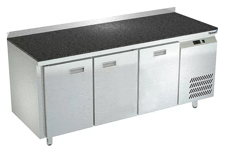 Морозильный стол Техно-ТТ СПБ/М-422/21-1807 предназначен для раскатки теста, обработки, заморозки и долговременного хранения продуктов, полуфабрикатов, напитков и мороженого на предприятиях общественного питания и торговли. Модель оснащена 2 секциями с 2 дверьми и регулируемой полкой-решеткой, я секцией с ящиками, направляющими с доводчиками (Австрия), петлями-доводчиками (Польша), бортом и круглыми ножками, регулируемыми по высоте на 50 мм (Италия). Корпус выполнен из нержавеющей стали AISI 430, задняя стенка и дно - из оцинкованной стали, столешница - из камня. Стол поставляется в собранном виде. Особенности: