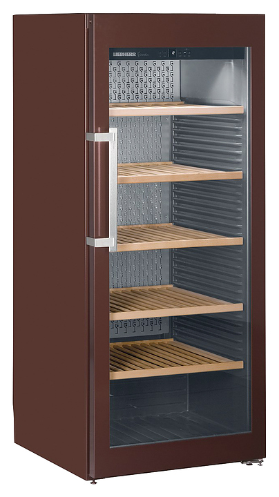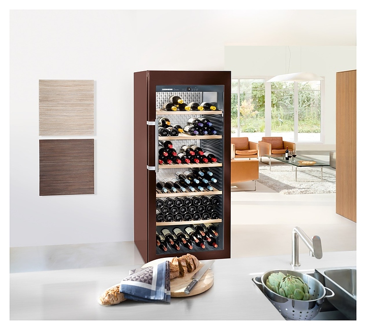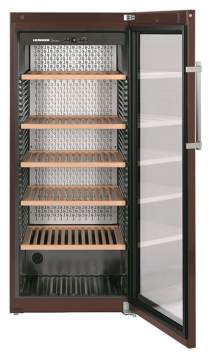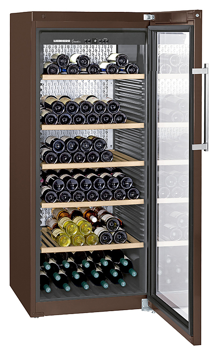 Винный шкаф Liebherr WKt 4552 серии GrandCru предназначен для охлаждения и длительного хранения разливного вина в частных домах, квартирах, отелях и офисах. Модель оснащена кнопочным управлением и цифровой индикацией температуры. Внутренняя прокладка выполнена из серого полистирола, корпус - из стали, дверь - стекла с покрытием УФ, полки - из дерева акации, ручка - из алюминия. Особенности: