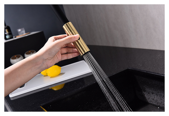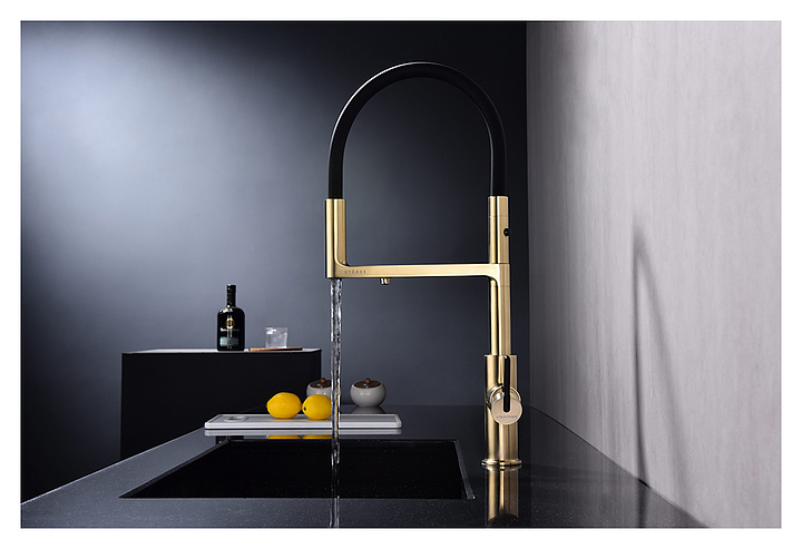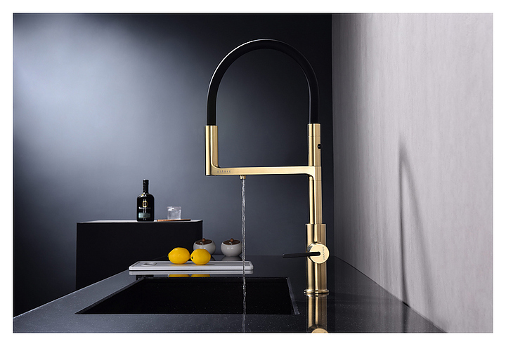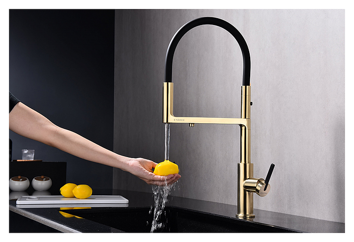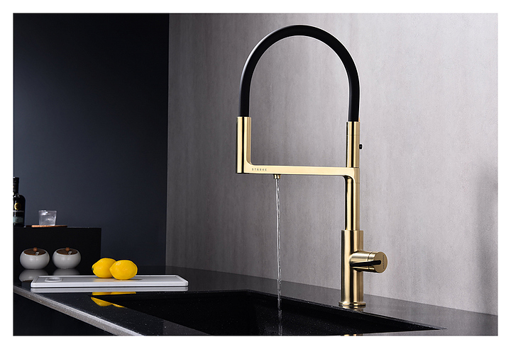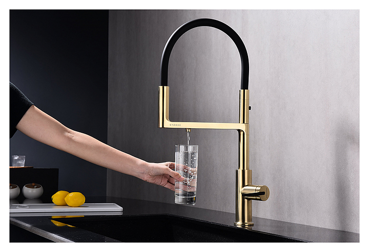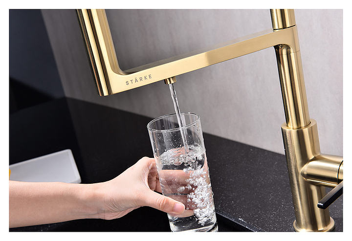 Смеситель Paulmark Tornado To213402-SBG предназначен для подачи горячей и холодной воды в кухонных помещениях. Модель оснащена гибким изливом, дополнительным каналом для фильтрованной воды и керамическим картриджем, обеспечивающим плавный ход рычага смесителя, контроль и точность при выборе напора и температуры воды. Смеситель монтируется с помощью гайки. Изделие выполнено из латуни, отличающейся прочностью, долговечностью и устойчивостью к перепадам температуры, излив - из силикона. Дополнительные характеристики: