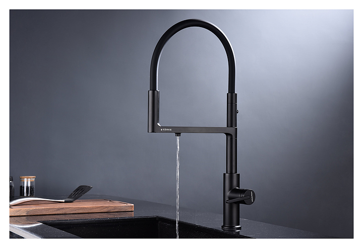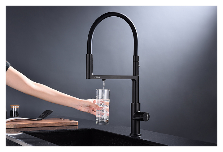 Смеситель Paulmark Tornado To213402-401 предназначен для подачи горячей и холодной воды в кухонных помещениях. Модель оснащена гибким изливом, дополнительным каналом для фильтрованной воды и керамическим картриджем, обеспечивающим плавный ход рычага смесителя, контроль и точность при выборе напора и температуры воды. Смеситель монтируется с помощью гайки. Изделие выполнено из латуни, отличающейся прочностью, долговечностью и устойчивостью к перепадам температуры, излив - из силикона. Дополнительные характеристики: