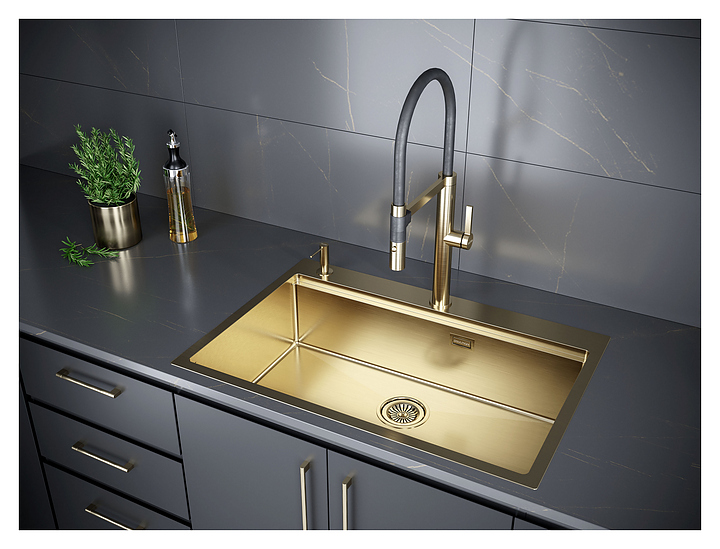 Мойка Paulmark Vast-Pro PM707551-BG предназначена для рационального планирования рабочего места на кухне. Модель оснащена широкой задней поверхностью для размещения смесителя и аксессуаров. Изделие выполнено из нержавеющей стали, которая отличается надежностью, ударопрочностью , стойкостью к износу и высоким температурам. В комплект поставки входят крепеж для монтажа и сифон. Особенности: