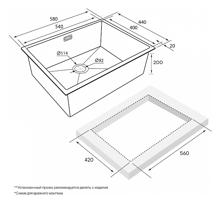 Мойка Paulmark Next-580 PM215844-BS предназначена для рационального планирования рабочего места на кухне. Шумопоглощающее покрытие с внешней стороны снижает уровень шума при эксплуатации. Изделие выполнено из нержавеющей стали, которая отличается надежностью, ударопрочностью, стойкостью к износу и высоким температурам. В комплект поставки входят сифон, крепеж для подстольного монтажа и крепеж для врезного монтажа. Дополнительные характеристики: