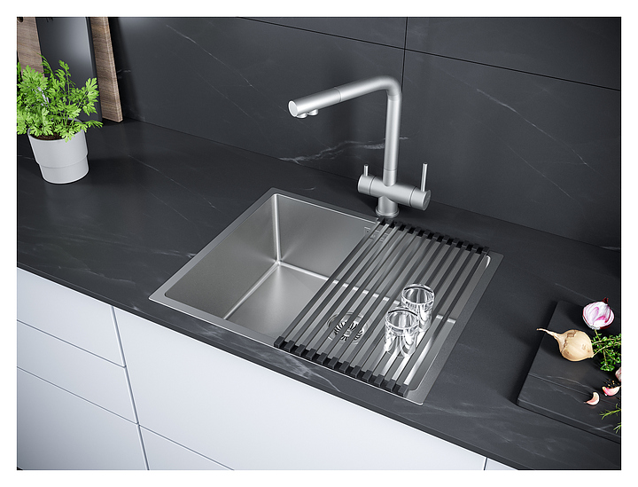 Мойка Paulmark Next-540 PM215444-BS предназначена для рационального планирования рабочего места на кухне. Шумопоглощающее покрытие с внешней стороны снижает уровень шума при эксплуатации. Изделие выполнено из нержавеющей стали, которая отличается надежностью, ударопрочностью, стойкостью к износу и высоким температурам. В комплект поставки входят сифон, крепеж для подстольного монтажа и крепеж для врезного монтажа. Дополнительные характеристики:
