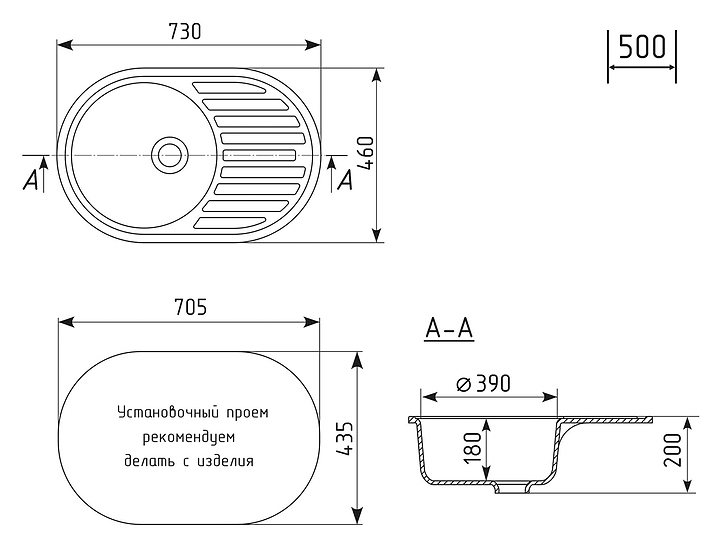 Мойка кухонная Mixline ML-GM16 73х46 cм, черная