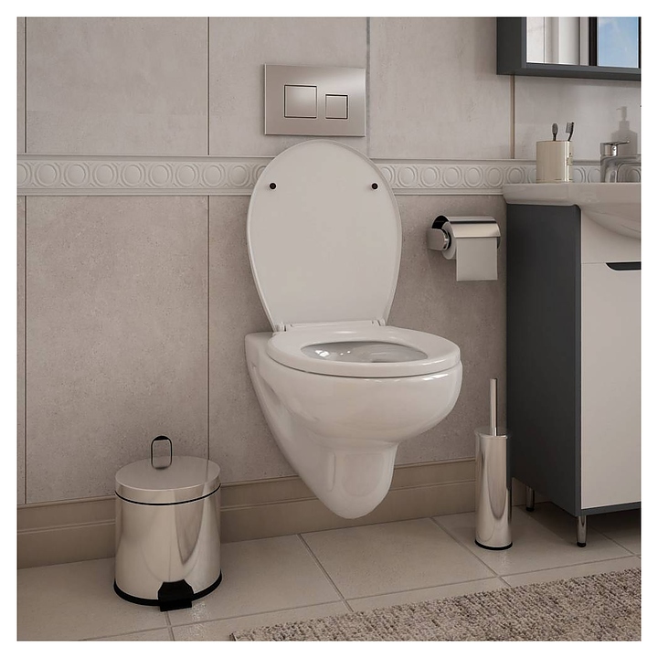 Унитаз Maretti Aria AR10PBM80-844 выполнен в современном стиле. Благодаря подвесной конструкции модель не занимает много места в помещении, а свободное пространство под чашей делает уборку в ванной комнате гораздо легче. Безободковое исполнение позволяет предотвратить скопление бактерий и грязи на внутренней поверхности чаши, что гарантирует ее чистоту и гигиеничность использования, система "Антивсплеск" предотвращает всплеск воды при смыве. Встроенный механизм микролифта не дает сиденью резко опускаться, обеспечивая бесшумное использование, и предотвращает появление трещин, царапин и сколов на изделии. Изделие выполнено из фаянса, который обладает повышенной прочностью, не впитывает запахи и грязь, сиденье - из дюропласта. В комплект поставки входят чаша унитаза, сиденье и комплект креплений к инсталляции. Особенности: