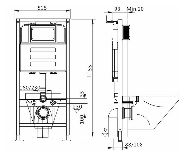 Унитаз подвесной с инсталляцией, клавишей смыва и сиденьем Maretti Calabria CA29KA74052