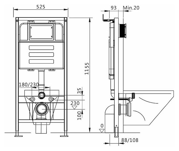 Унитаз подвесной с инсталляцией, клавишей смыва и сиденьем Maretti Umbria UM76UM74052 белый