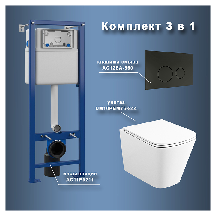 Унитаз подвесной с инсталляцией, клавишей смыва и сиденьем Maretti Umbria UM76EA56052 белый