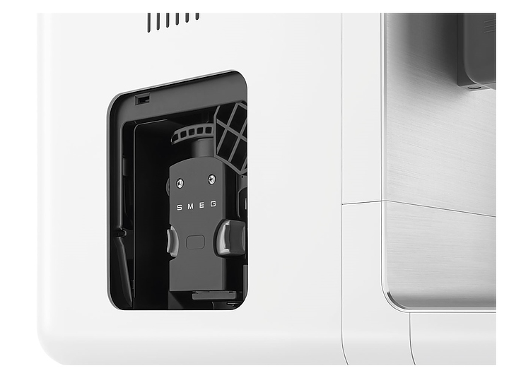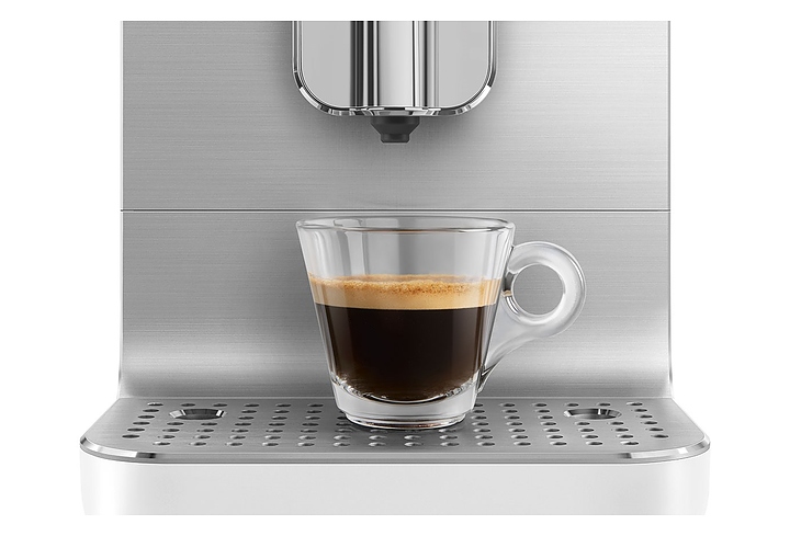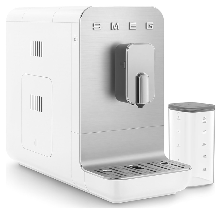 Автоматическая эспрессо кофемашина SMEG BCC13WHMEU предназначена для приготовления кофе эспрессо и напитков на его основе в гостиницах, офисах и домашних условиях. Модель оснащена кабелем питания с евровилкой (Shuko) и панелью управления с нажимными кнопками. Корпусы прибора и основания подставки для чашек и кнопки выполнены из пластика с внешней поверхностью белого цвета, объемные накладные литеры логотипа – из пластика с серебристой поверхностью, фронтальные панели и поддон для чашек – из алюминия с сатинированной поверхностью и полированной кромкой, бойлер – из нержавеющей сталирезервуар для воды – из сополимера стирола и акрилонитрила (SAN) дымчатого оттенка, корпус диспенсера и рукоятка резервуара – из серого пластика, изоляция кабеля серого цвета. Комплектация: