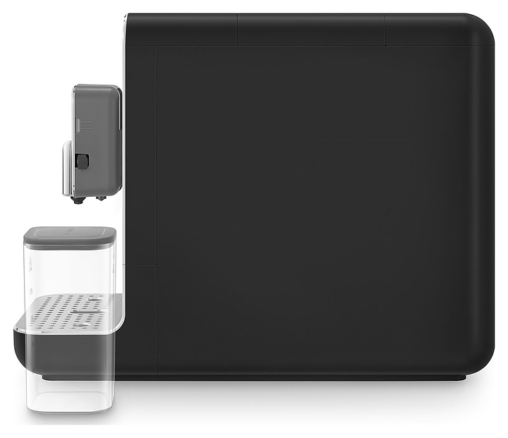 Автоматическая эспрессо кофемашина SMEG BCC13BLMEU предназначена для приготовления кофе эспрессо и напитков на его основе в гостиницах, офисах и домашних условиях. Модель оснащена кабелем питания с евровилкой (Shuko) и панелью управления с нажимными кнопками. Корпусы прибора и основания подставки для чашек и кнопки выполнены из пластика с матовой внешней поверхностью черного цвета, объемные накладные литеры логотипа – из пластика с серебристой поверхностью, фронтальные панели и поддон для чашек – из алюминия с сатинированной поверхностью и полированной кромкой, бойлер – из нержавеющей сталирезервуар для воды – из сополимера стирола и акрилонитрила (SAN) дымчатого оттенка, корпус диспенсера и рукоятка резервуара – из серого пластика, изоляция кабеля серого цвета. Комплектация: