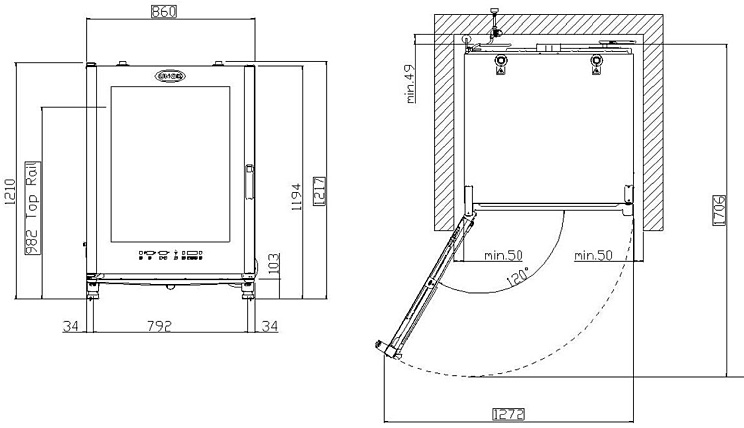 Реверсивная дверца с возможностью переустановки даже после начала запуска и работы печи (кроме моделей 20 GN 2/1 и 20 GN 1/1)