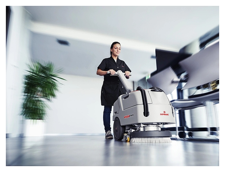 Поломоечная машина Comac Vispa EVO предназначена для технической уборки полов в помещениях небольших и средних размеров, в том числе загроможденных. Модель оcнащена литий-ионной батареей, что позволяет значительно сократить время зарядки и увеличивает производительность работы. Конструкция изготовлена из полиэтилена и обеспечивает устойчивость и прочность машины. Комплектация: