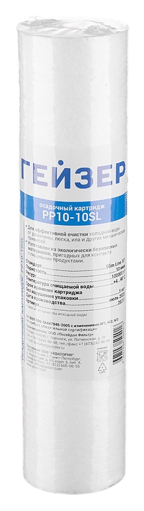 Картридж для фильтра ГЕЙЗЕР PP 10 - 10SL предназначен для совместного использования с фильтрами стандарта Slim Line 10" для механической очистки воды от ржавчины, грязи, песка и других нерастворимых примесей размерами более 10 мкм. Модель выполнена из вспененнного полипропилена. Дополнительные характеристики: