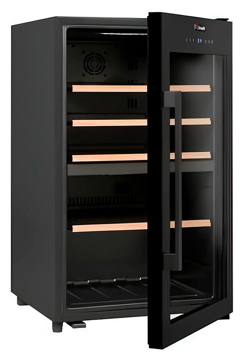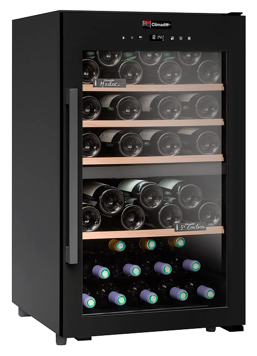 Винный шкаф Climadiff CLD55B1 предназначен для хранения вина при определенном уровне влажности и температуры в ресторанах, специализированных магазинах, отелях, подсобных складских помещениях, в частных домах или квартирах. Модель оснащена сенсорной панелью управления, расположенной на дверце и 2 регулируемыми ножками. Полки выполнены из стальной проволоки с фасадом из дерева. Особенности: