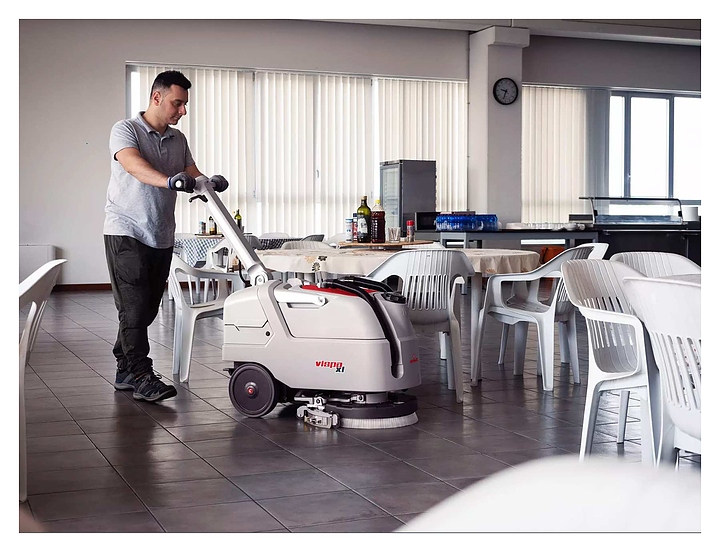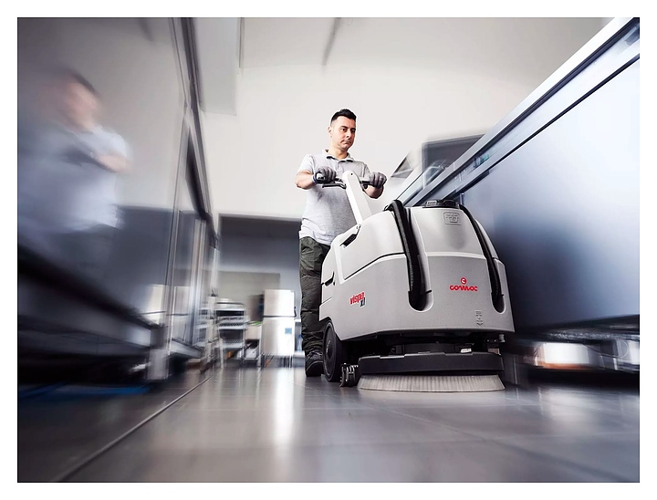 Поломоечная машина Comac Vispa XL предназначена для технической уборки полов в помещениях небольших и средних размеров, в том числе загроможденных. Модель оcнащена литий-ионной батареей, что позволяет значительно сократить время зарядки и увеличивает производительность работы. Конструкция изготовлена из полиэтилена и обеспечивает устойчивость и прочность машины. Особенности: