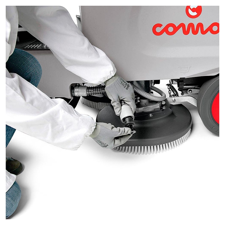 Поломоечная машина Comac Innova 85 B предназначена для уборки небольших магазинов, офисов, столовых, ресторанов, салонов красоты, парикмахерских, медицинских пунктов, детских садов и школ. Модель оcнащена местом оператора, 2 дисковыми щетками с высокой скоростью вращения, электронной панелью управления и колесами. Корпус изготовлен из ударопрочного пластика. Комплектация: