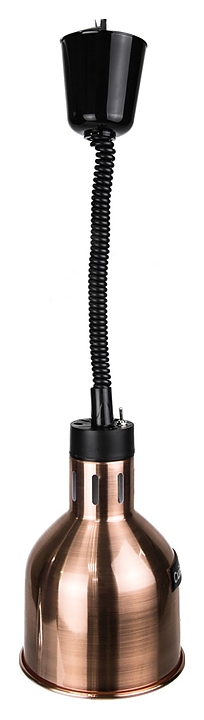 Подвесной подогреватель CuisinAid CD-A032BR используется на предприятиях общественного питания и торговли для поддержания тарелок, готовых блюд и продуктов в разогретом состоянии с помощью инфракрасного излучения. Модель оснащена тумблером-выключателем. Корпус выполнен из металла с внешним покрытием бронзового оттенка. В комплект поставки входят лампа и набор крепежа. Дополнительные характеристики: