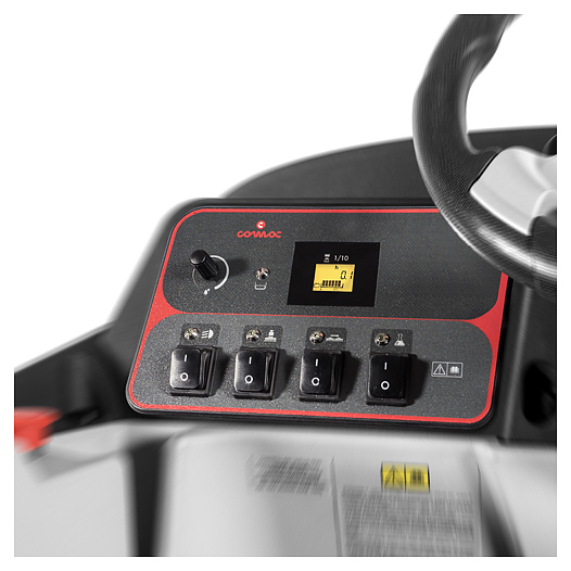 Руль, педаль хода нового поколения и сиденье с подлокотниками очень удобны и обеспечивают максимальный комфорт оператора даже при продолжительной эксплуатации поломоечной машины