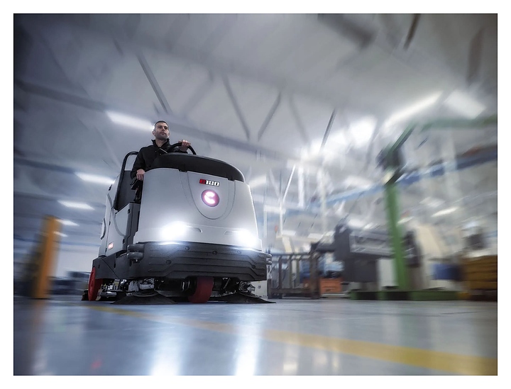 Руль, педаль хода нового поколения и сиденье с подлокотниками очень удобны и обеспечивают максимальный комфорт оператора даже при продолжительной эксплуатации поломоечной машины