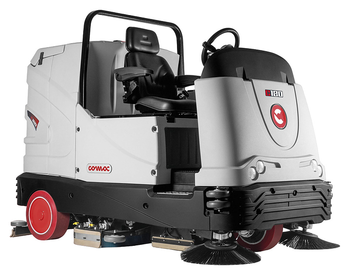 Поломоечная машина Comac C120 предназначена для технической и глубокой уборки даже самой трудноудаляемой грязи в производственных цехах, на складах, в торговых центрах, супермаркетах, логистических центрах и других помещениях площадью до 20000 м2. Модель состоит из блока предварительного подметания, оснащенного 2 боковыми и 2 цилиндрическими щетками, за которым следует блок мойки, оснащенный 3 дисковыми щетками, обеспечивающими оптимальную производительность. Корпус изготовлен из ударопрочного пластика, несущая рама - из стали и окрашена методом катафореза, обеспечивающим высокую устойчивость к коррозии.